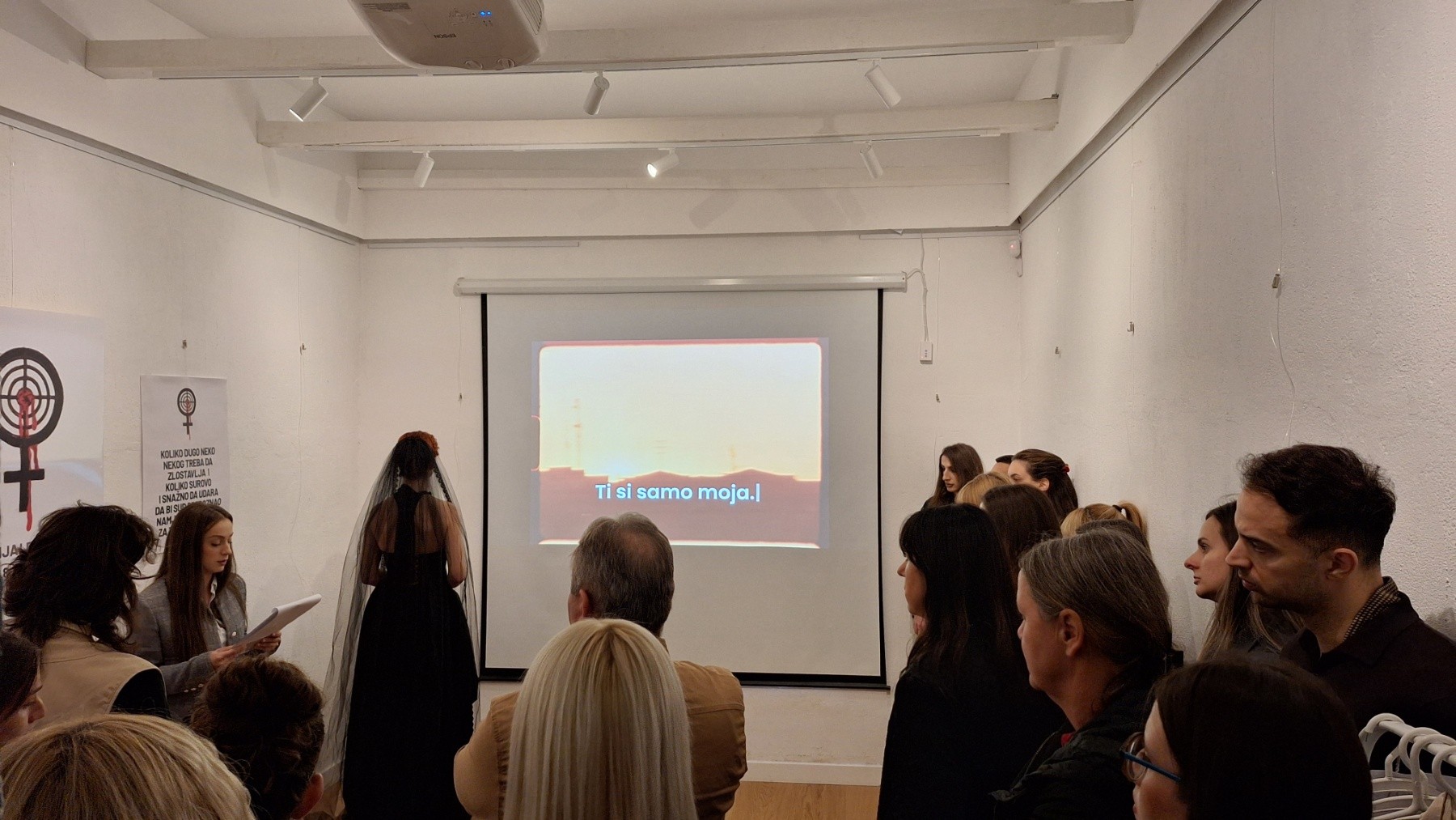 „Vjenčanicu, simbol radosti, zajedništva i ljubavi, pretvorile smo u simbol borbe. Ne da bismo napale brak, već da bismo ga oslobodile od nasilja. Da bismo rekle da je ljubav nespojiva sa strahom. Da bismo pokazale da trenutak u kojem jedna žena izgovara „da” nikada ne smije biti početak njenog ćutanja, povlačenja i boli“, rekla je tokom uvodne riječi Zorica Konatar, ispred Centra za ženska prava.