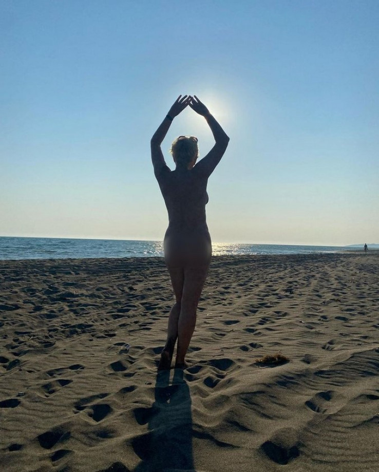 Ona je pozirala na nudističkoj plaži na Adi Bojani, gdje inače ljetuje skoro svake godine. Okrenula se prema zalasku sunca, a ispred objektiva se našla njena pozadina.