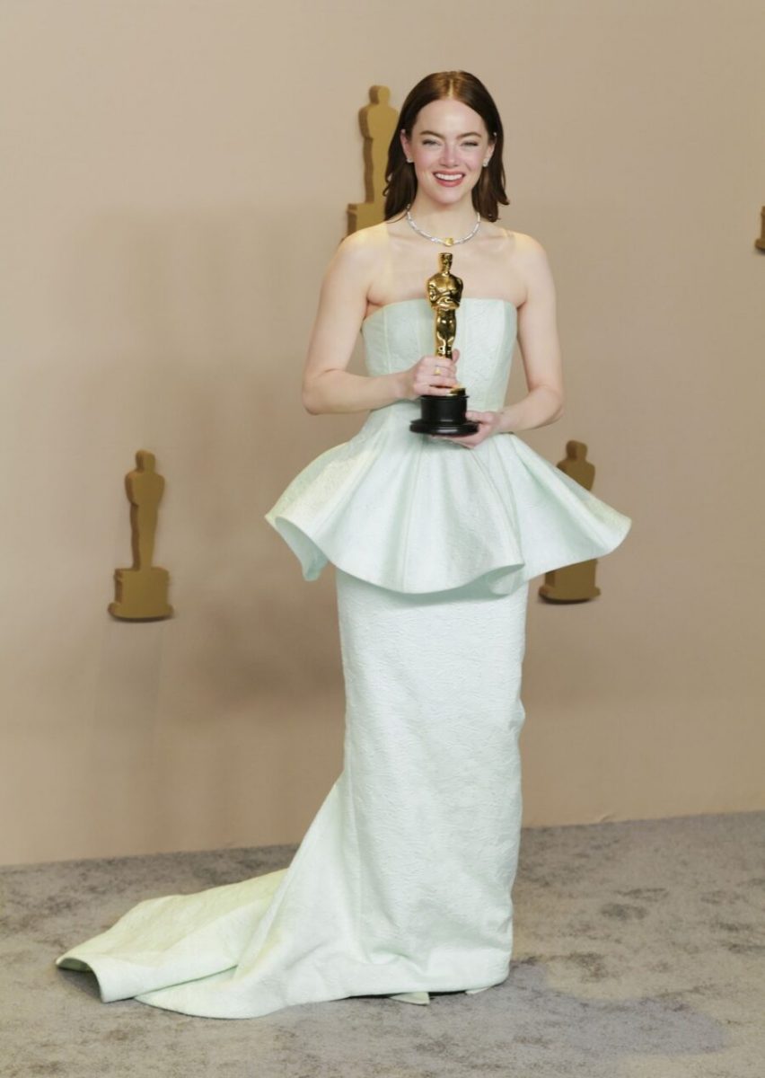 Uplakana Ema se u nevjerici popela na scenu i odmah otkrila publici da joj je haljina pocijepana. Glumica je na dodjelu nagrade stigla u kreaciji modne kuće Louis Vuitton, sa kojom redovno sarađuje.