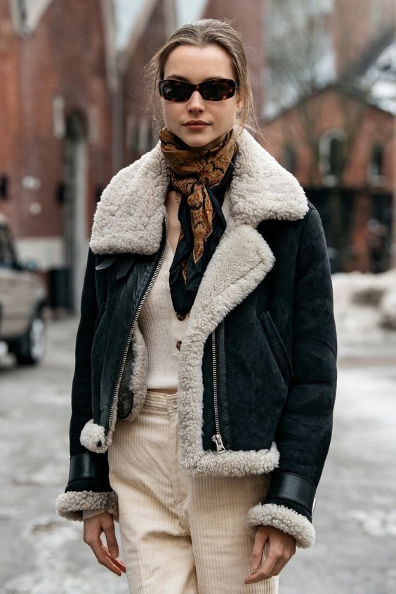 Kada želite u isto vrijeme da izgledate šik i opasno, bajkerska jakna će biti vaš vjerni jesenji pratilac. Odlično ide uz obične farmerke i majicu, ali i preko elegantne haljine. Postava bi trebalo da bude bijela i nalik vuni, kako bi bila u kontrastu sa crnom kožom i metalnim rajsferšlusima.