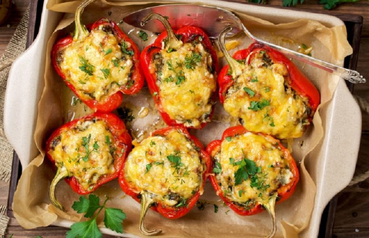 Rasporedite sir u polovine paprika i stavite u nauljenu vatrostalnu posudu, pa pecite u rerni zagrijanoj na 200 stepeni oko 20 minuta.